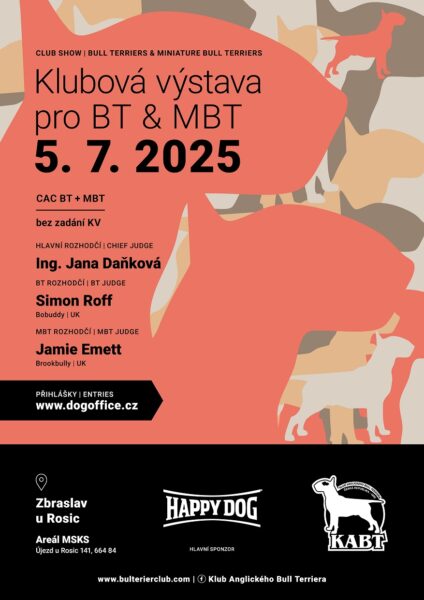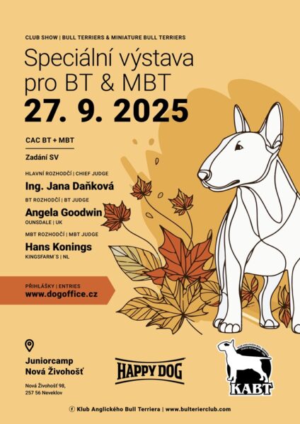 27. září 2025. Návrhy zasílejte na e-mail klubu: bulterierclub@email.cz nejpozději do 13. 9. 2025.
