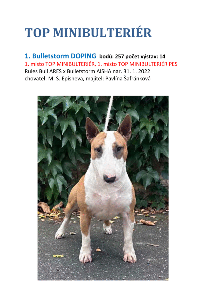 ARSO AMERICAN LEGACY MiniBullWest, Jun.Ch. – CZUdělen titul Junior Šampion ČR – leden 2014